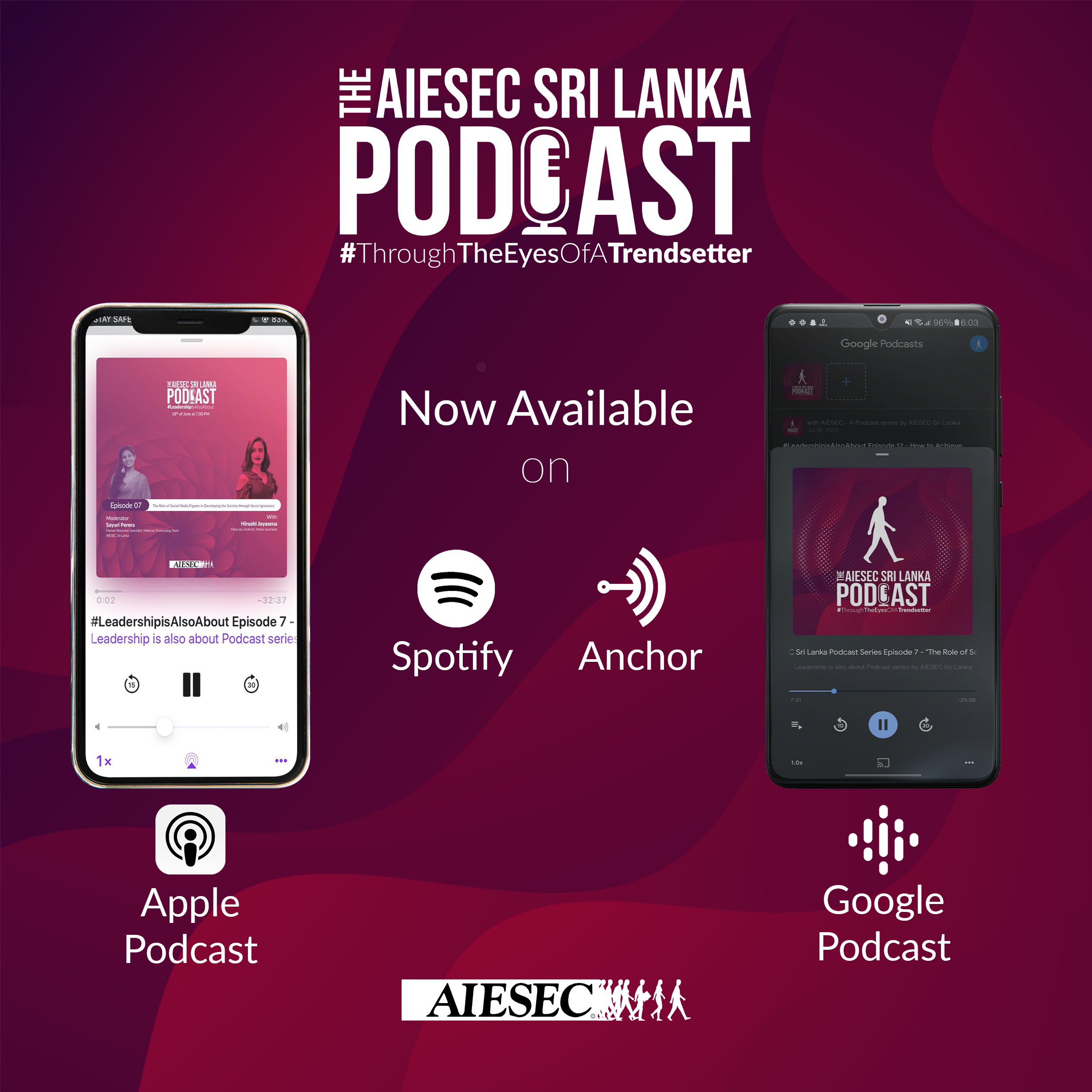 The second season of the AIESEC Sri Lanka podcast with Series named #ThroughTheEyesOfATrendsetter invites the trendsetters in different industries. There were 12 episodes in this season which had a total of 12 guest speakers who were celebrities and the expert in their fields, and a moderator.